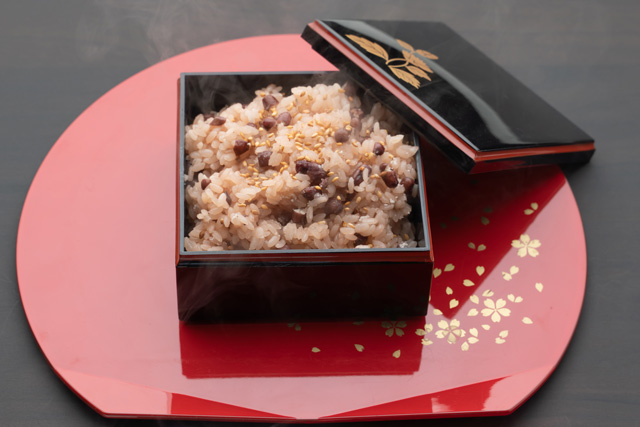- 普通白米を炊飯するのと同様に炊く。 ※炊飯器に赤飯(おこわ)を炊く機能がある場合は、取扱説明書をご確認の上、水加減などをご調整ください。